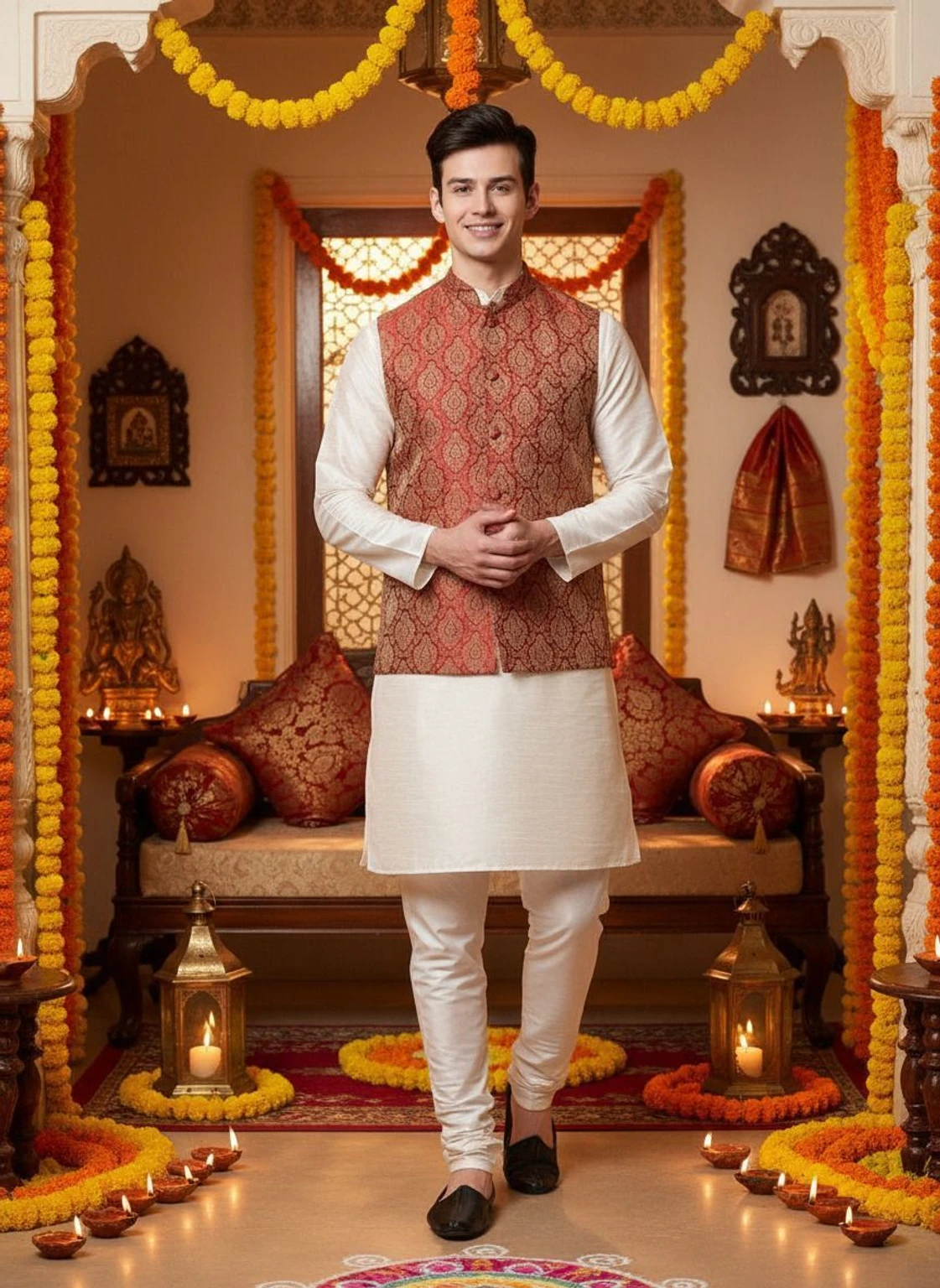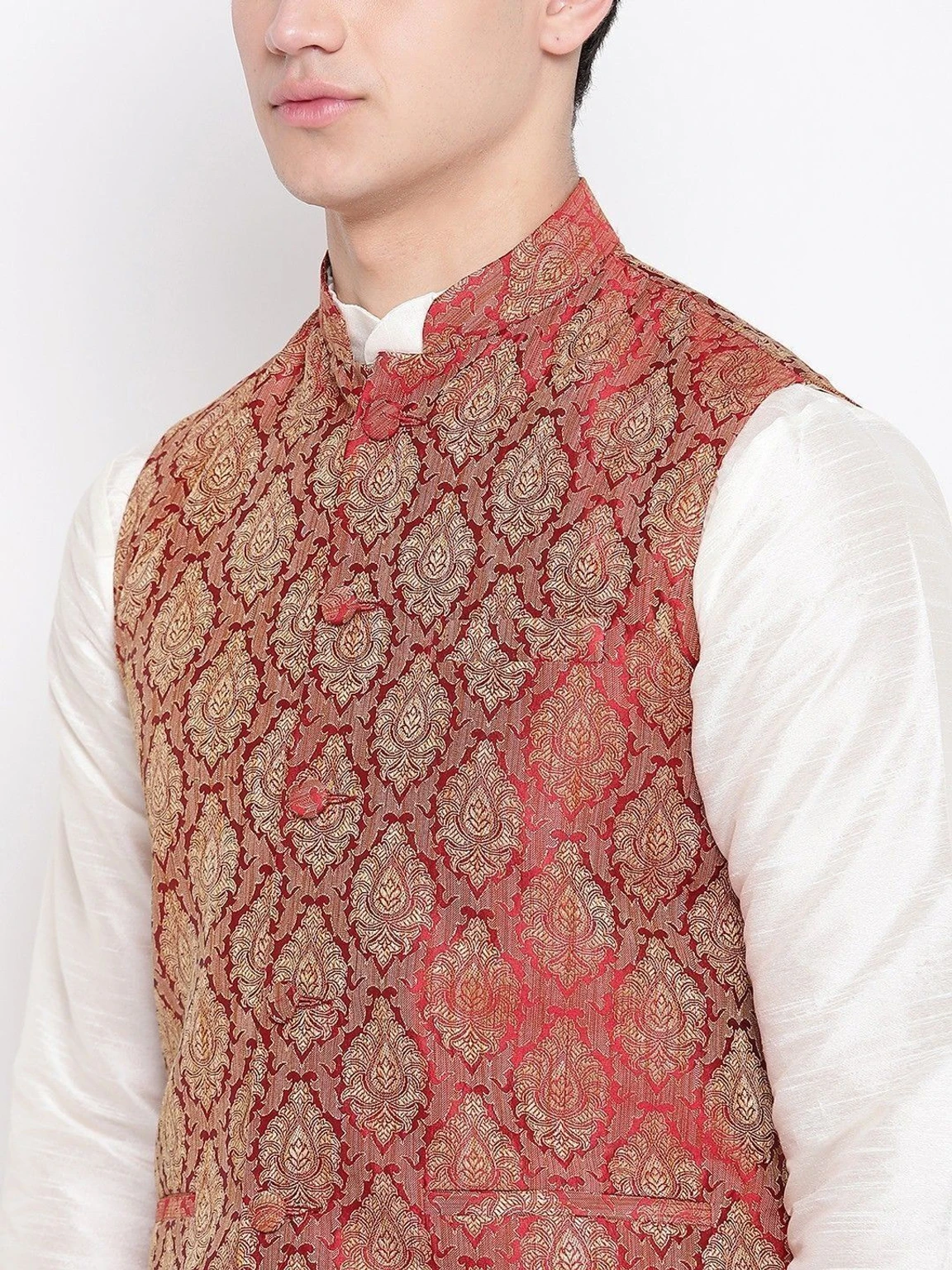 MAG Men Pure Silk Kurta Pyjama Ethnic Jacket Set